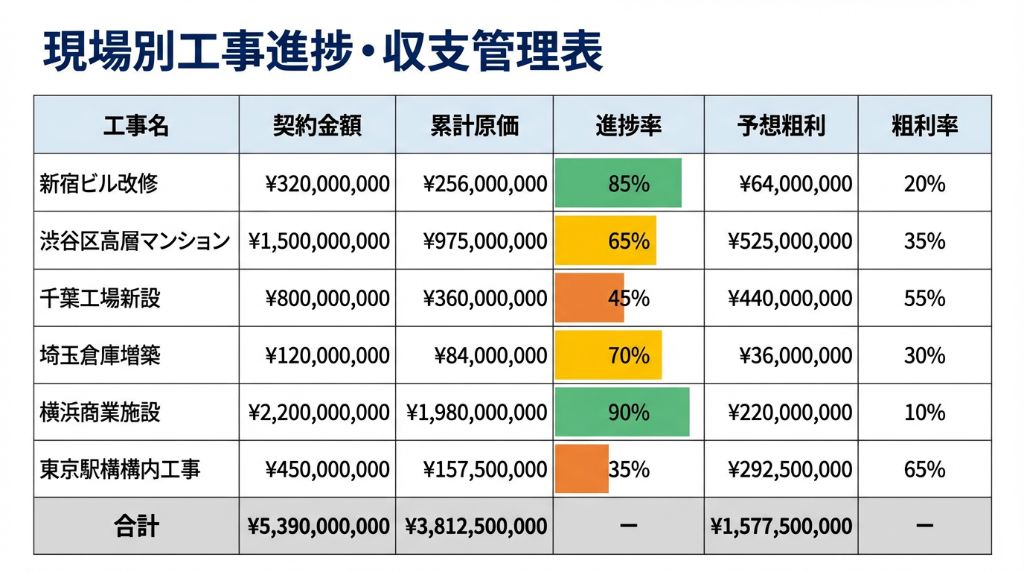 - 現場別 工事利益レポート(売上・原価・粗利率)